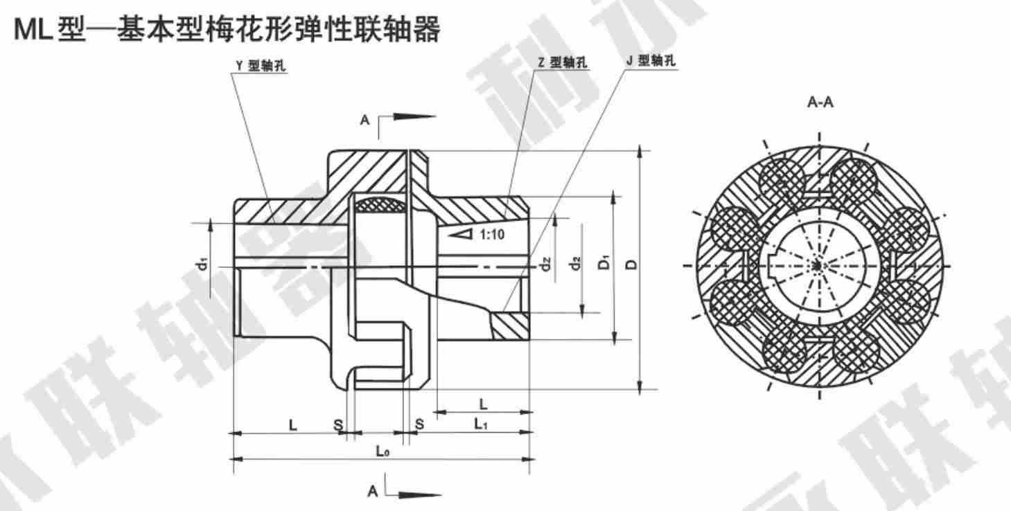 LM(ML)系列梅花形彈性聯(lián)軸器基本參數(shù):