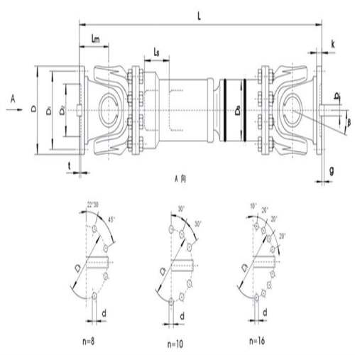 型號(hào) | 回轉(zhuǎn) | 公稱 | 疲勞 | 軸線 <β | 伸縮量 LS mm | 尺 寸(mm | 轉(zhuǎn)動(dòng)慣量 I | 重量 G | |||||||||||